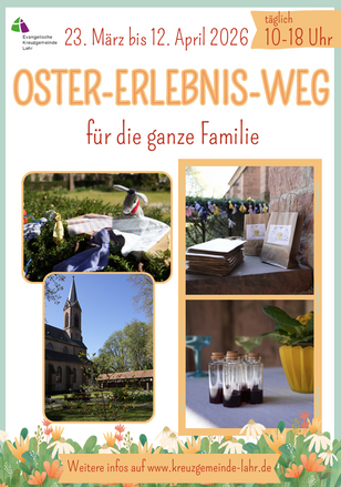 Rund um das Osterfest bieten die Kirchengemeinden in der Ortenau und die Kirche auf dem Vogtsbauernhof wieder erlebnisreiche und informative Osterwege und -spaziergänge sowie Aktionen für die ganze Familie.